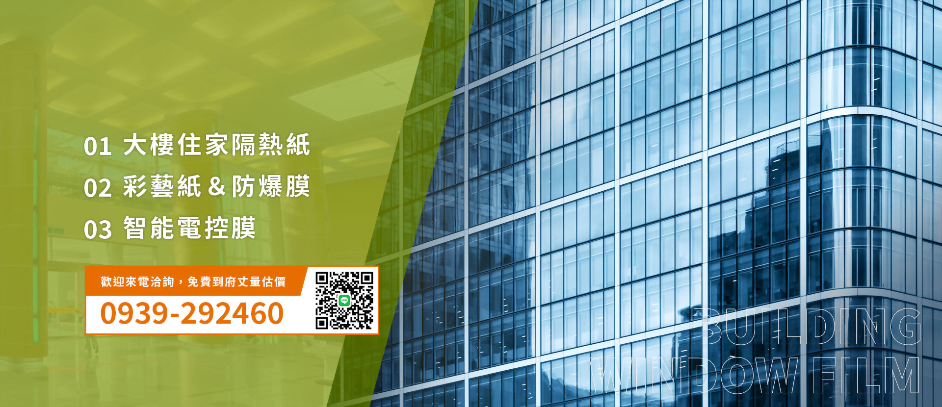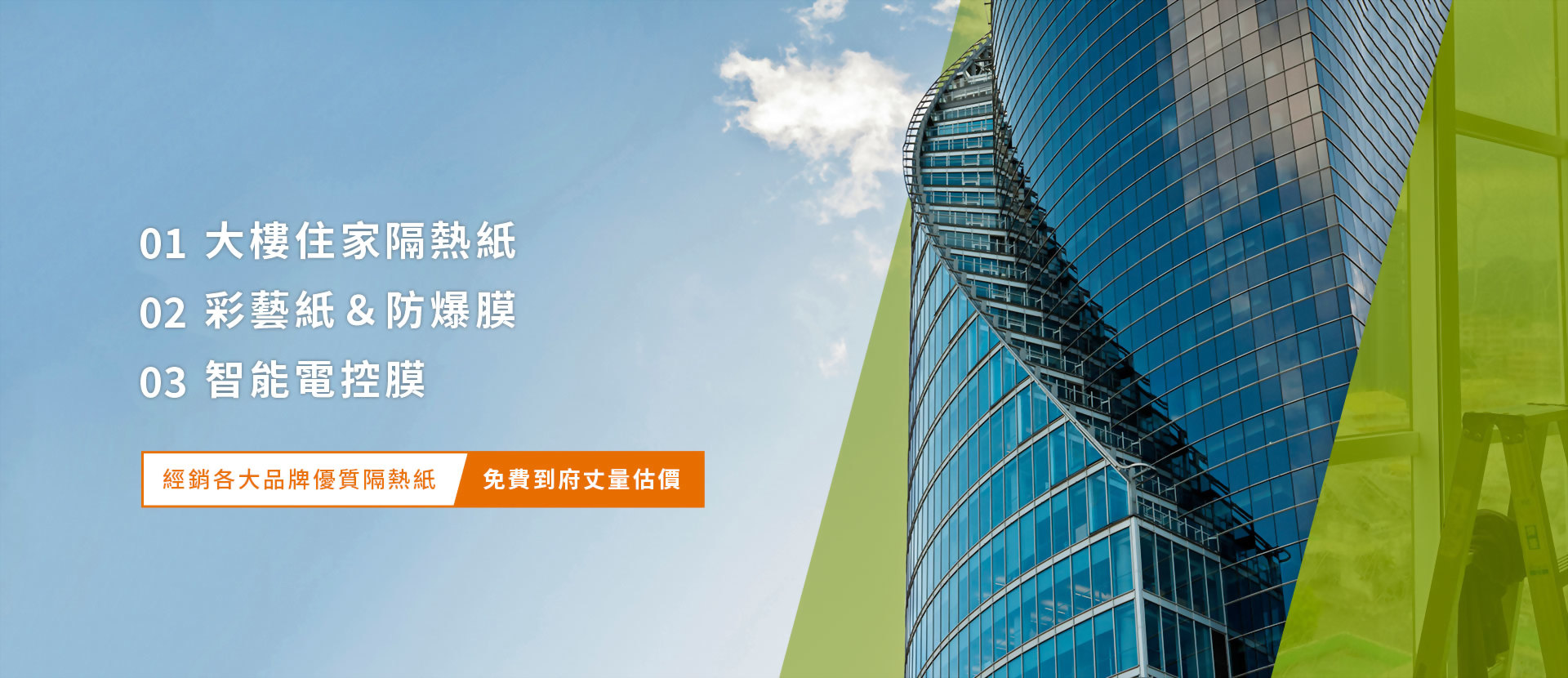 各種尺寸建築物用隔熱紙,可應用於商辦大樓、住宅大樓、辦公室、住家私宅等